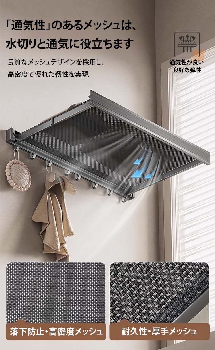多機能壁掛け式折りたたみ伸縮物干しネット